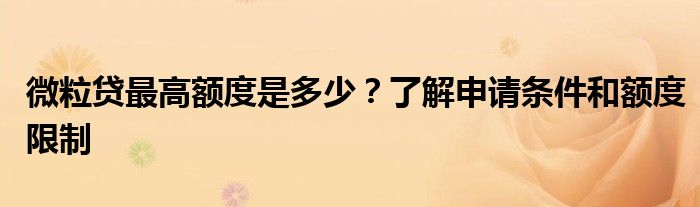 微粒贷最高额度是多少?了解申请条件和额度限制