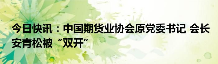 今日快讯:中国期货业协会原党委书记 会长安青松被“双开”