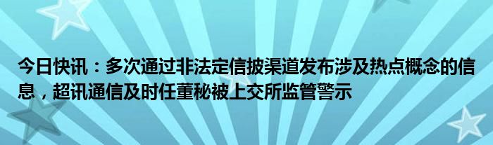 今日快讯:多次通过非法定信披渠道发布涉及热点概念的信息,超讯通信及时任董秘被上交所监管警示
