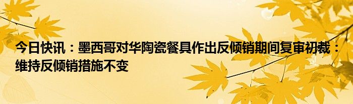 今日快讯:墨西哥对华陶瓷餐具作出反倾销期间复审初裁:维持反倾销措施不变