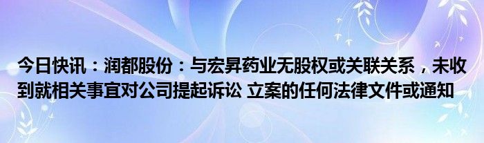 今日快讯:润都股份:与宏昇药业无股权或关联关系,未收到就相关事宜对公司提起诉讼 立案的任何法律文件或通知