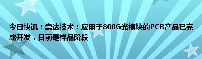 今日快讯:崇达技术:应用于800G光模块的PCB产品已完成开发,目前是样品阶段