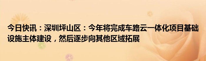今日快讯:深圳坪山区:今年将完成车路云一体化项目基础设施主体建设,然后逐步向其他区域拓展