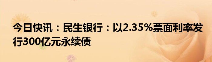 今日快讯:民生银行:以2.35%票面利率发行300亿元永续债