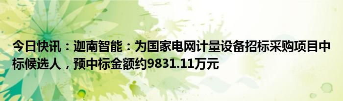 今日快讯:迦南智能:为国家电网计量设备招标采购项目中标候选人,预中标金额约9831.11万元
