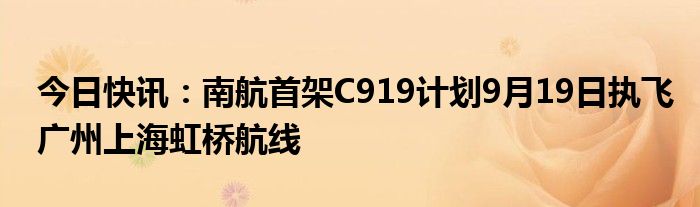 今日快讯:南航首架C919计划9月19日执飞广州上海虹桥航线