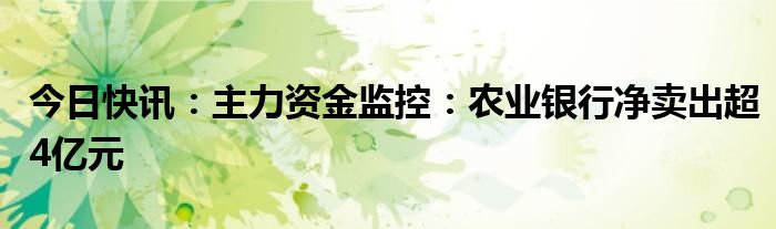 今日快讯:主力资金监控:农业银行净卖出超4亿元