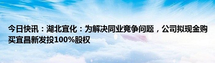 今日快讯:湖北宜化:为解决同业竞争问题,公司拟现金购买宜昌新发投100%股权