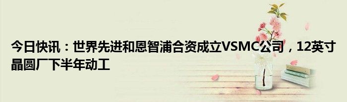 今日快讯:世界先进和恩智浦合资成立VSMC公司,12英寸晶圆厂下半年动工
