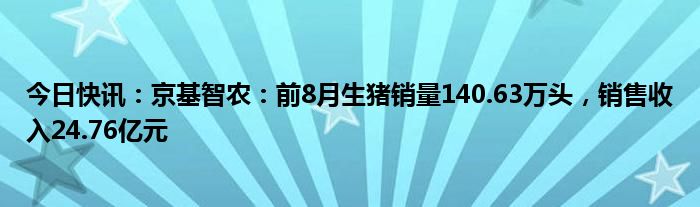 今日快讯:京基智农:前8月生猪销量140.63万头,销售收入24.76亿元