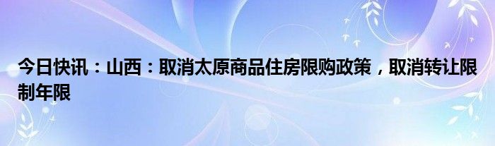 今日快讯:山西:取消太原商品住房限购政策,取消转让限制年限