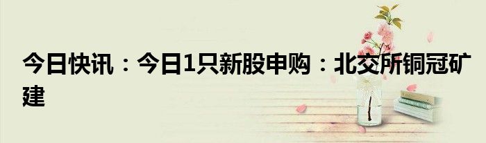 今日快讯:今日1只新股申购:北交所铜冠矿建