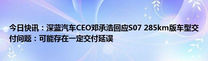 今日快讯:深蓝汽车CEO邓承浩回应S07 285km版车型交付问题:可能存在一定交付延误