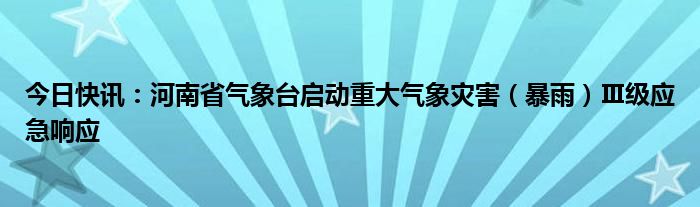 今日快讯:河南省气象台启动重大气象灾害(暴雨)Ⅲ级应急响应