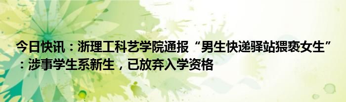 今日快讯:浙理工科艺学院通报“男生快递驿站猥亵女生”:涉事学生系新生,已放弃入学资格