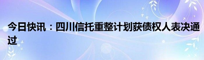 9月20日,四川信托管理人发布公告称,四川信托有限公司重整案第二次债权人会议依法通过网络方式召开,《四川信托有限公司重整计划》已获表决通过。