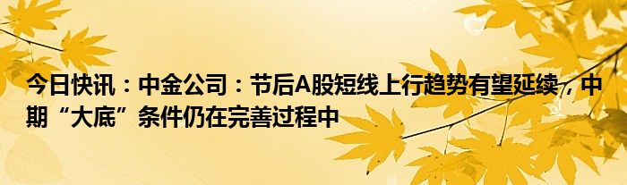 今日快讯:中金公司:节后A股短线上行趋势有望延续,中期“大底”条件仍在完善过程中